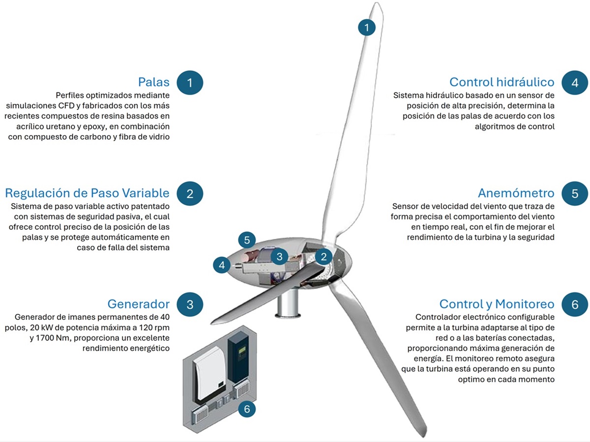 Control remoto: permite la personalización remota de la turbina eólica para proporcionar el rendimiento óptimo en cada sitio.